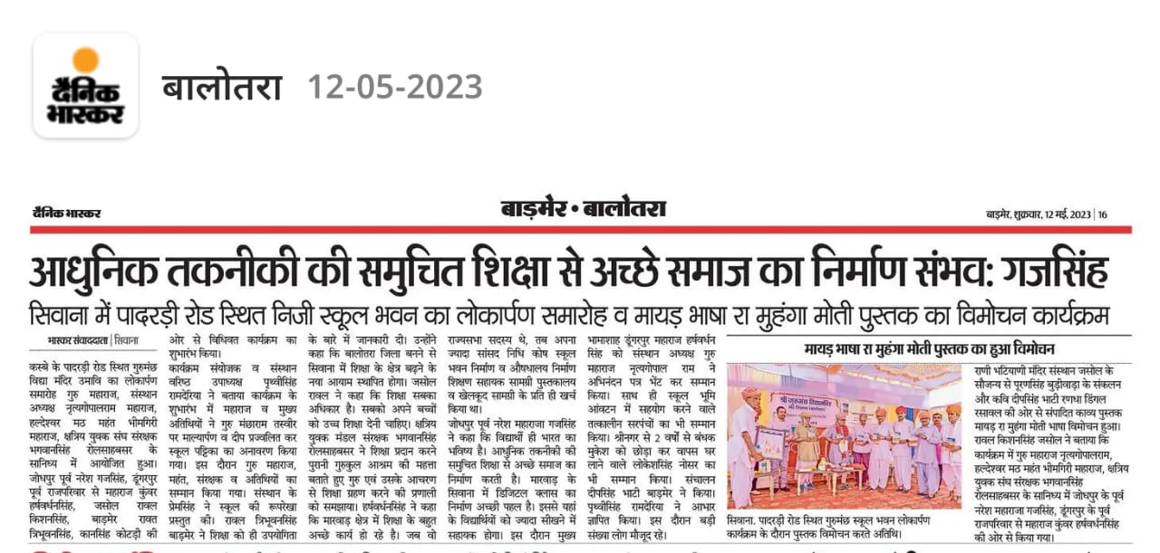 a proud moment for us. that we established a great education empire in siwana by the grace of samadhi temple of siwana.